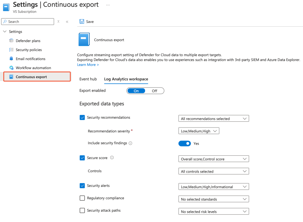 - Note, that exporting this data will incur costs within your Log Analytics/Sentinel workspace, monitor costs accordingly.